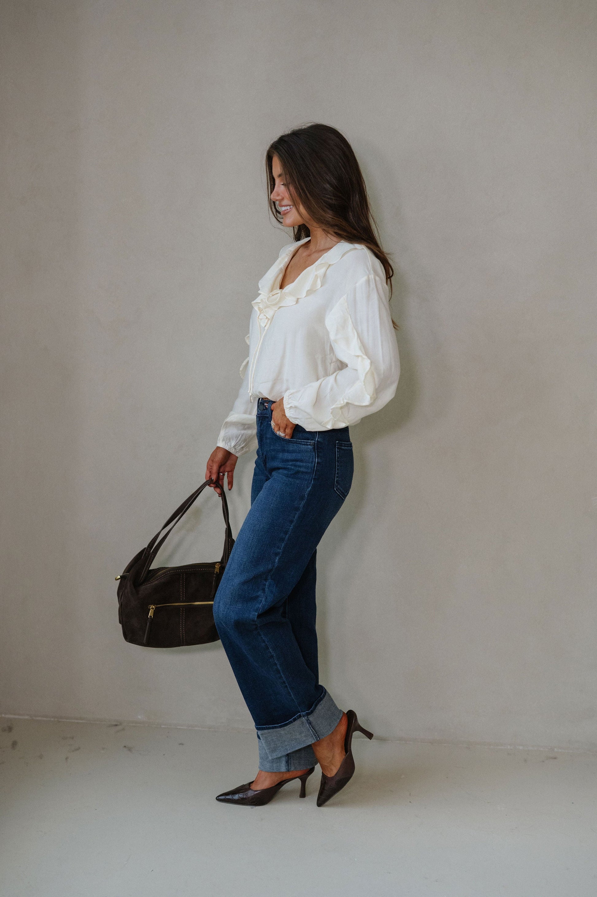 Collared Ruffle Front Tie Blouse-Oat Milk
